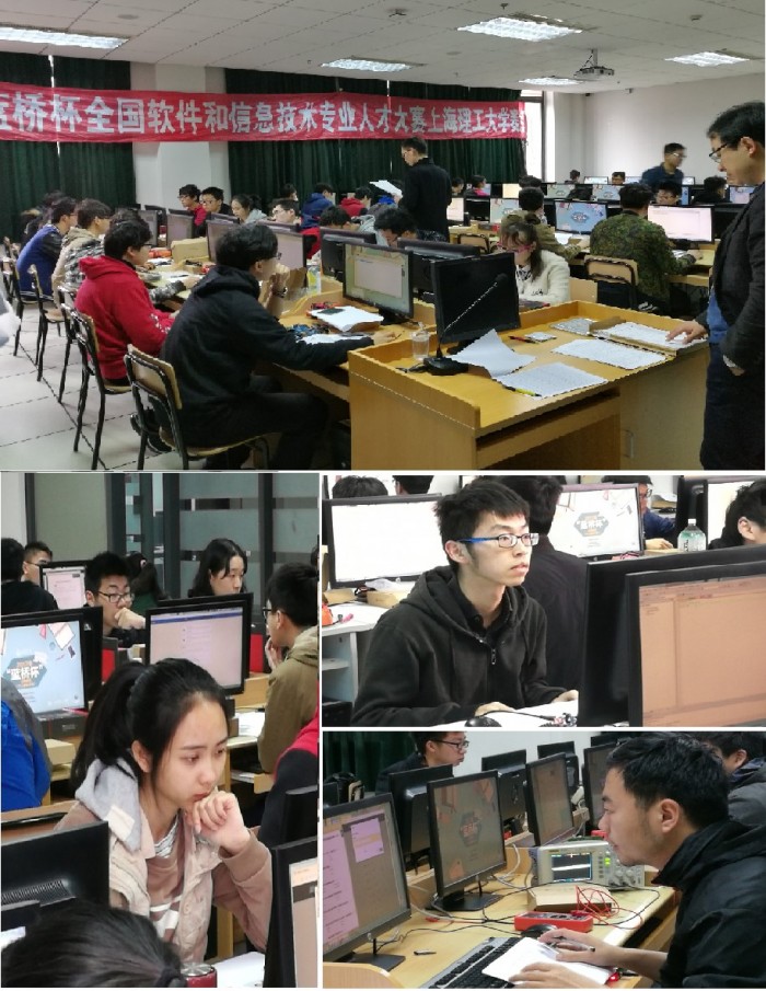 活动内容: 4月8日,全国第八届“蓝桥杯”软件和信息技术专业人才大赛省赛(上海赛区个人赛电子类)在我校计算中心顺利举行,来自上海理工大学、上海海事大学、上海海洋大学等6所院校的100余名选手参赛。本届大赛软件类赛事在东华大学、华东师范大学及上海第二工业大学同步进行。我校经校内赛选拔,共选派13名选手参加电子类赛事,81名选手参加软件类赛事,决赛将于5月27、28日在北京举行。 全国 “蓝桥杯”软件和信息技术专业人才大赛由工业和信息化部人才交流中心主办,教育部就业指导中心等相关司局支持的赛事,是旨在推动软件和信息技术产业的发展,促进软件和信息技术专业技术人才培养,向软件和信息技术行业输送具有创新能力和实践能力的高端人才,提升高校毕业生的就业竞争力的一项全国性赛事。公共实验中心安排由计算中心、电工电子实验中心等部门通力合作,赛前精心组织,赛中认真督考,顺利完成了此次赛事的各项工作,期待我校选手能取得佳绩。