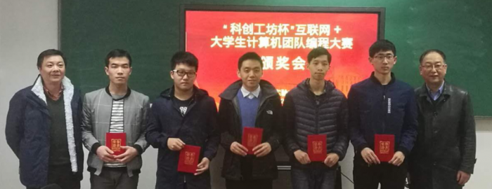 活动内容: 由上海理工大学教务处与公共实验中心主办、计算中心承办的第一届“科创工坊”杯互联网+大学生团体计算机编程大赛近日在计算中心成功举办,大赛吸引我校留学生、来自近10个学院的本科生、以及来自华东师范大学的本科生代表合计140余人参赛,赛事采用计算机答题、线上自动阅卷打分与排名的形式,重点考查参赛队员的基础程序设计能力、数据结构与算法应用能力,并通过团体成绩体现高校在程序设计教学方面的整体水平。 赛事设团队特等奖1项、一等奖2项、二等奖4项、三等奖8项以及优胜奖若干,于12月13日在公共实验中心举行了颁奖仪式暨获奖代表座谈会,公共实验中心主任周亦敏、教务处副处长郝润科为部分获奖代表颁奖并就创新创业工作做出讲话,部分获奖代表发言并就科创工坊的发展提出了富有建设性的建议。 该赛事同时作为由教育部高等学校计算机类专业教学指导委员会、教育部高等学校软件工程专业教学指导委员会、教育部高等学校计算机课程教学指导委员会以及全国高等学校计算机教育研究会共同主办的“中国高校计算机大赛—团体程序设计天梯赛”的校内选拔赛,旨在提升学生计算机问题求解水平,激发大学生学习计算机知识技能的兴趣和潜能,增强学生程序设计能力,提高大学生的综合素质,同时丰富校园学术气氛,促进学科间的建设交流,提高高校程序设计教学水平。