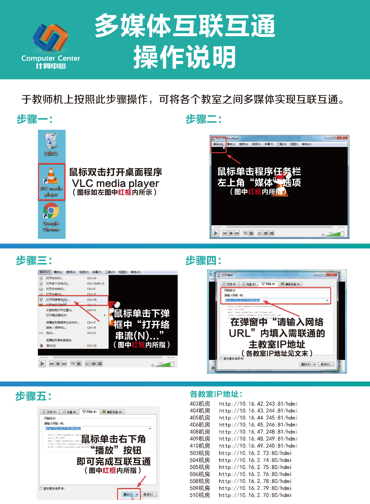 同时为满足部分课程需求,中心于2015、2018年分批建成实验室多媒体互联互通系统,实现了军工路580号校区任意实验室间的多媒体教学同步演示功能。