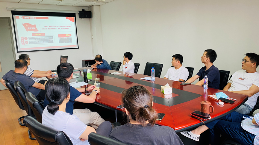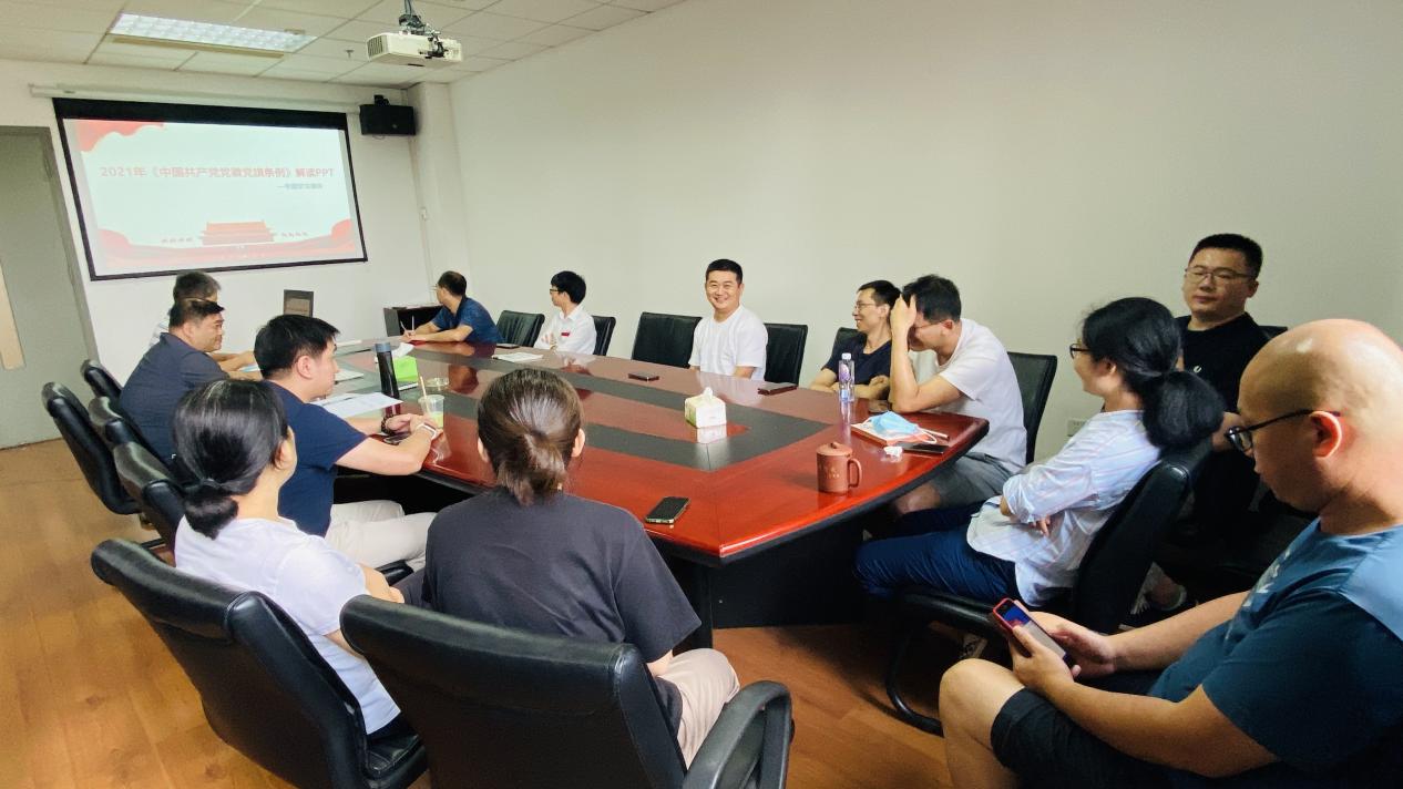 为深入开展党史学习教育,进一步规范使用党徽党旗,2021年9月9日,公共实验中心第一党支部组织全体党员学习了《中国共产党党徽党旗条例》。