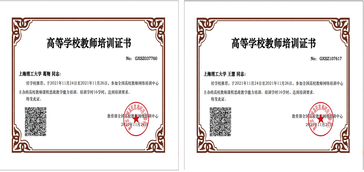 根据校《关于组织参加高校教师课程思政教学能力培训的通知》要求,计算中心2名教师参加了此次线上培训,完成13讲16学时的培训内容,并获得由教育部全国高校教育网络培训中心颁发的培训结业证书。