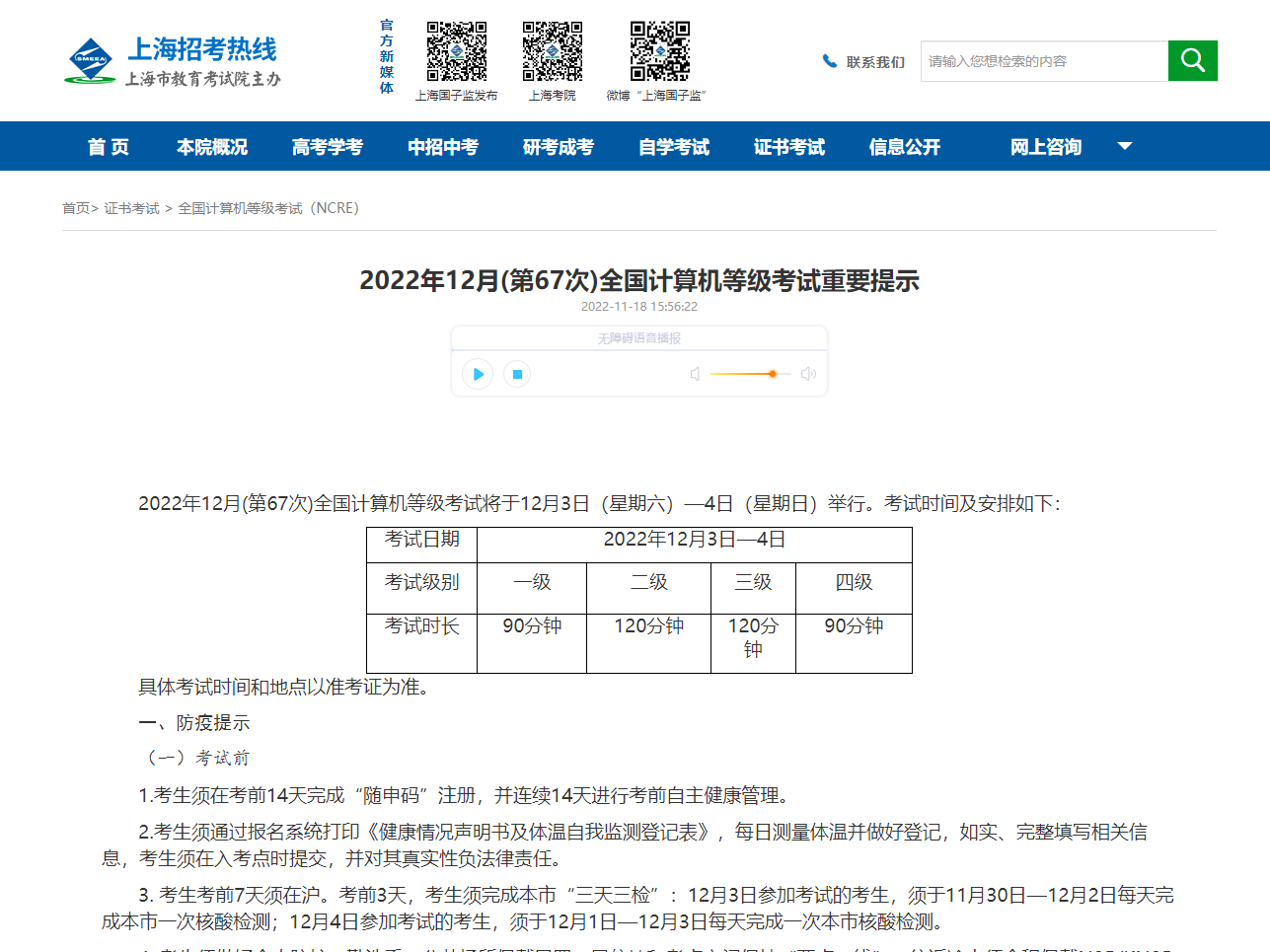 [转发]2022年12月(第67次)全国计算机等级考试重要提示