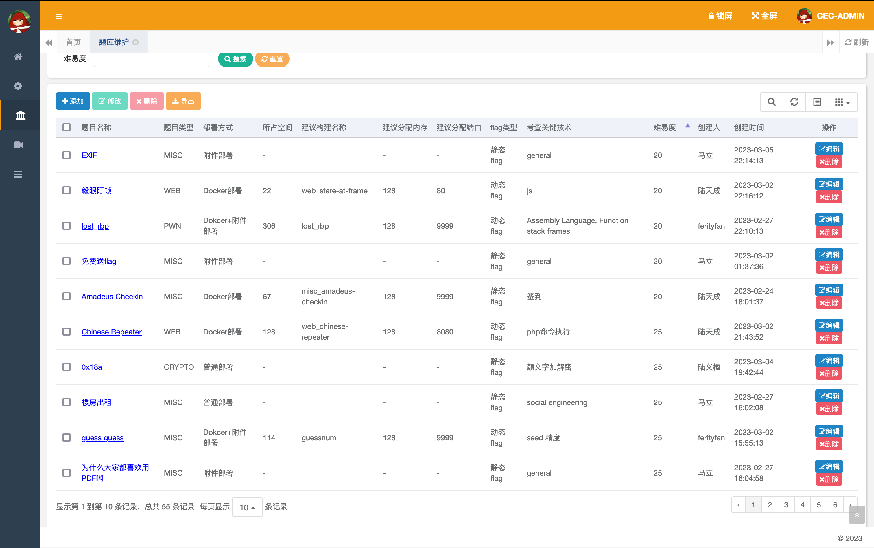 2月28日,由计算中心基于CTFD与Whale自主二次开发的CTF竞训平台上线试运行,自主开发的配套题库管理平台同期运行,目前已有55道自研赛题入库,为信息安全战队日常组内赛、校内赛赋能。
