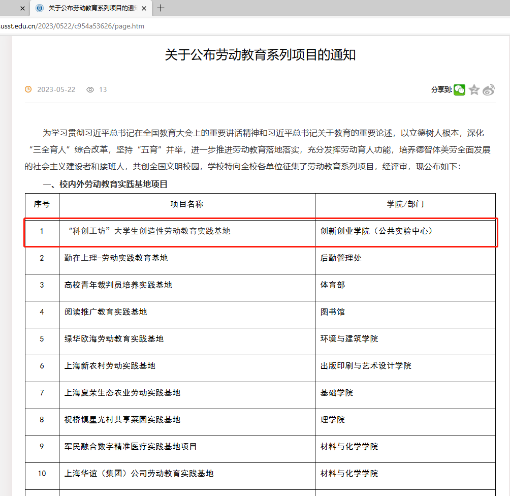 522日,学校发布《关于公布劳动教育系列项目的通知》(校园网链接:https://www.usst.edu.cn/2023/0522/c954a53626/page.htm),计算中心申报的《“科创工坊”大学生创造性劳动教育实践基地》获批校劳动教育实践基地项目,《劳技并举,信息安全创造性劳动探索与实践》获批“一院一品”创造性劳动教育项目。劳动教育项目是学校为学习贯彻习近平总书记在全国教育大会上的重要讲话精神和习近平总书记关于教育的重要论述,以立德树人根本,深化“三全育人”综合改革,坚持“五育”并举,进一步推进劳动教育落地落实,充分发挥劳动育人功能,培养德智体美劳全面发展的社会主义建设者和接班人,共创全国文明校园而向全校各单位征集、评审的系列项目。计算中心将以此为契机,以创造性劳动探索劳育新路径,以实践思政提升立德树人实效,以第二课堂培养创新实践技能,以工程美育推进综合素养提升,构建“德技并修、智技并习、劳技并举、美技并融”实践教学特色。