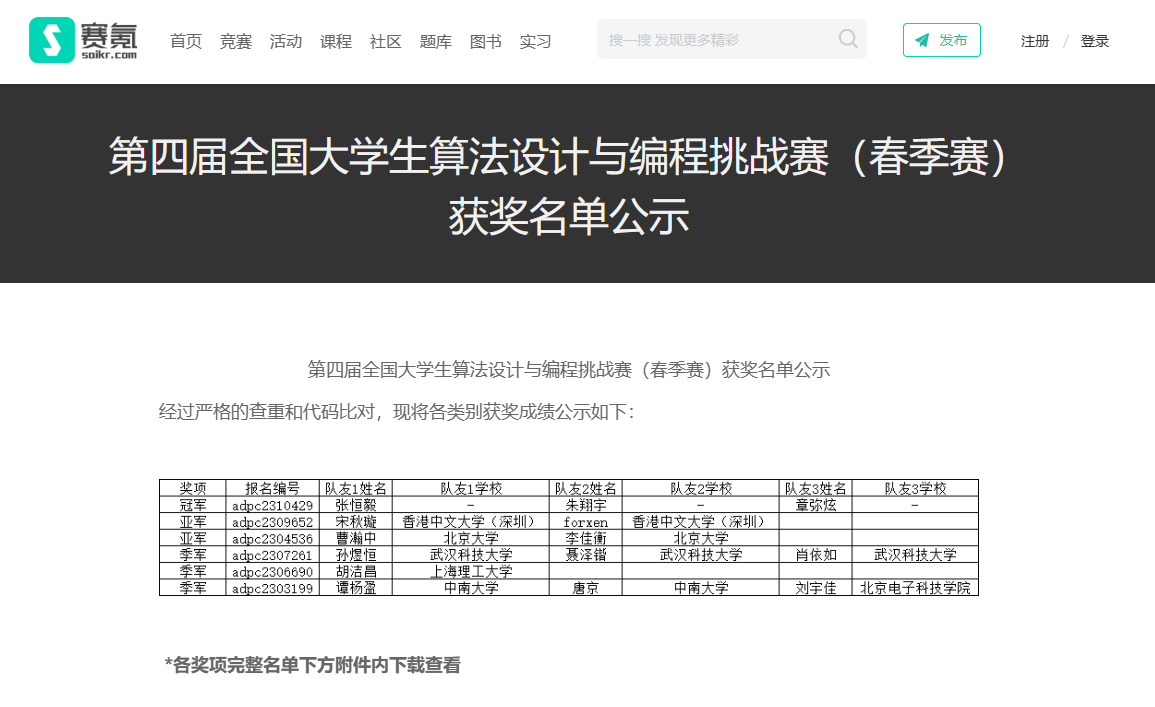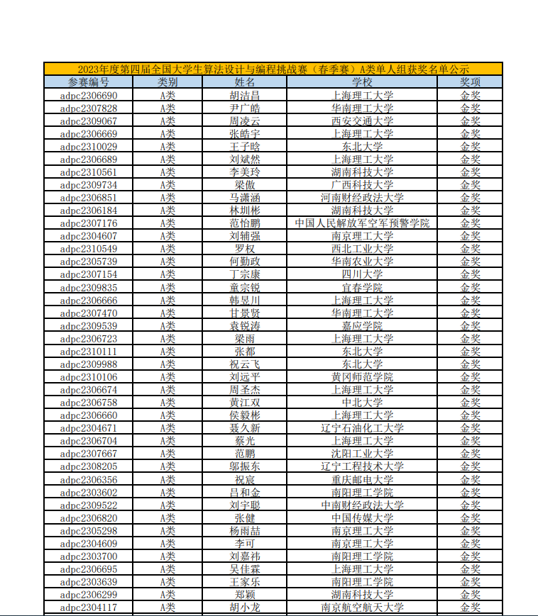 6月4日,2023年度第四届全国大学生算法设计与编程挑战赛(春季赛)落幕,科创工坊指导我校学生获得全国金奖11项、银奖7项,铜奖4项。我校胡洁昌同学获得本次大赛全国单人组冠军,并在全国所有组别(单人组、双人组、三人组)总成绩中获得季军。