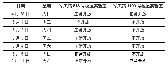 ,计算中心清明节、劳动节期间实验室开放安排如下: