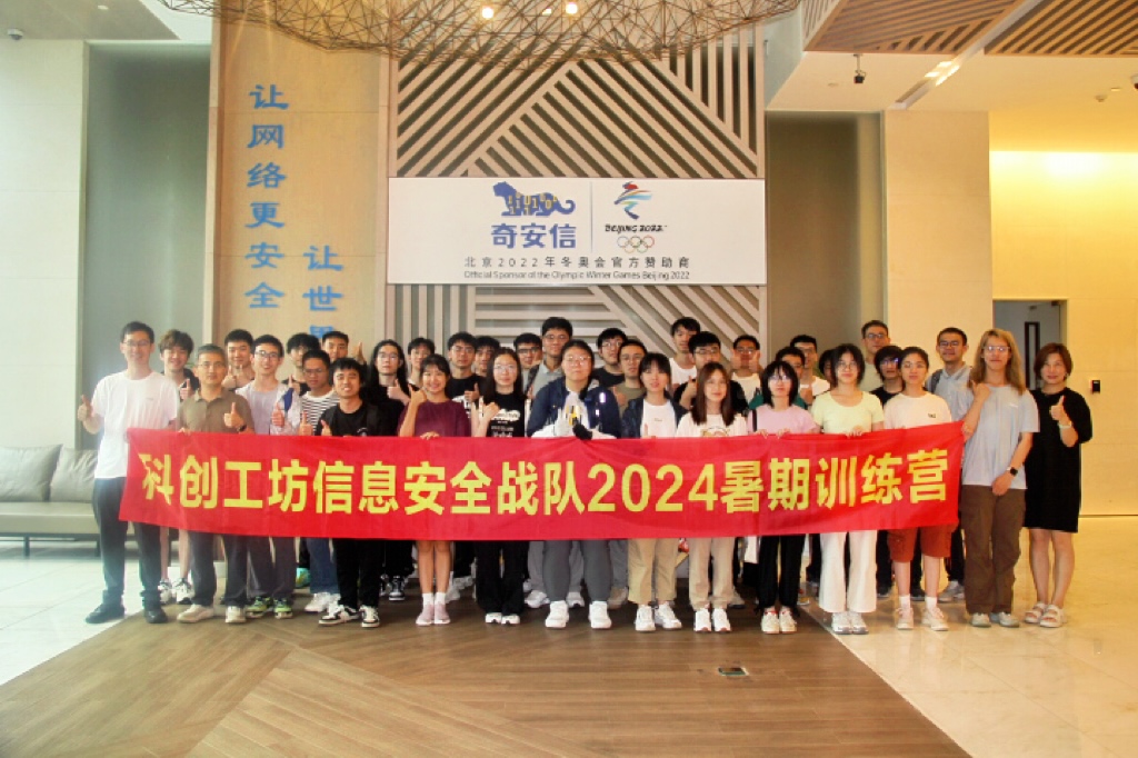 为提升同学们的网络安全意识和技术水平,作为科创工坊信息安全战队2024暑期训练营的一部分,我们的32名同学于2024年7月13日参观了奇安信上海总部。这次参观活动为同学们提供了一个近距离了解网络安全行业前沿技术和实践的机会。