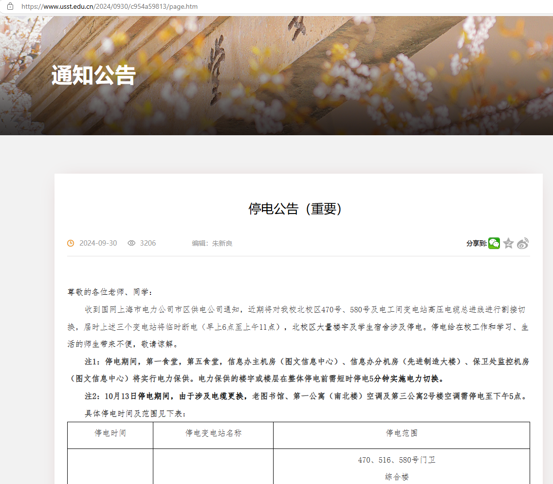 为配合学校电力改造(停电公告见校园网https://www.usst.edu.cn/2024/0930/c954a59813/page.htm),计算中心实验室在停电时间段内暂停开放,给各位师生带来的不便深表歉意。
